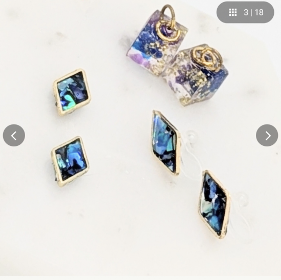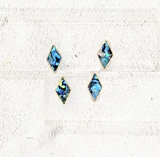 # 魅力溢れる螺鈿!小さなダイヤのブルー螺鈿のピアスイヤリング✨