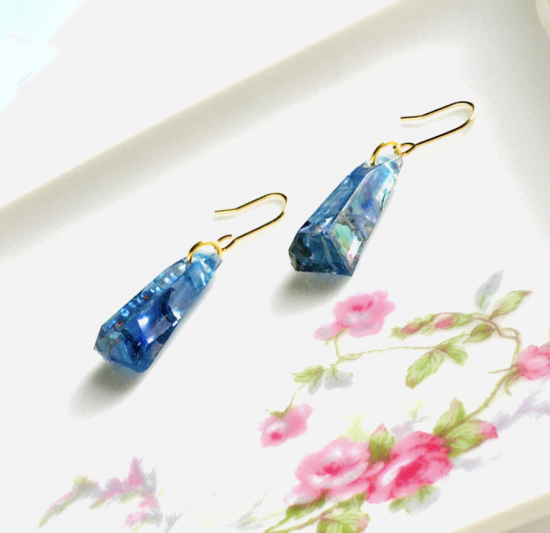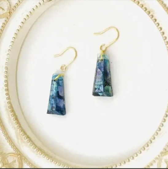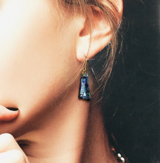 変幻自在な輝きを楽しむブルー螺鈿の台形ピアスイヤリングで、毎日のファッションをアップデートしませんか?