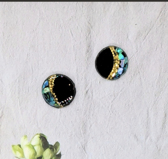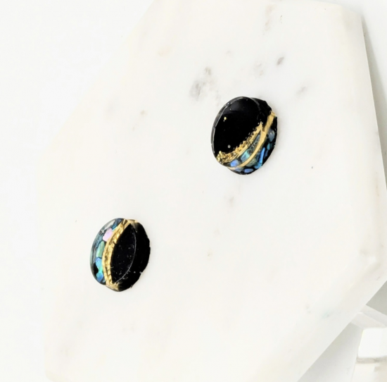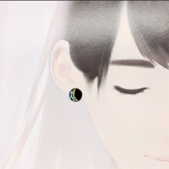 黒漆の地に螺鈿が施された、金継ぎ風ラウンドピアスイヤリングがこちらです。