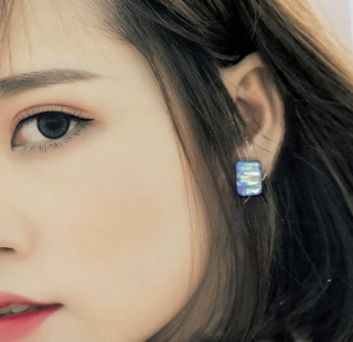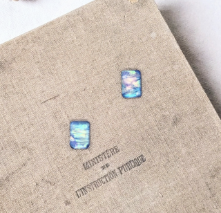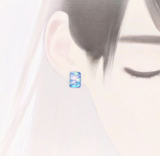 天然石オパールとパステルブルー螺鈿のピアスイヤリング、その妖艶な輝きと繊細な美しさは、あなたの装いを一層引き立ててくれること間違いなし。