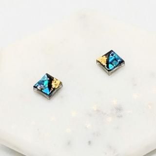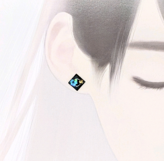 24k金箔とブルー螺鈿、そして黒漆の調和が生み出すこのスクエアピアスイヤリングは、まさに美の極みを感じさせる逸品です。
