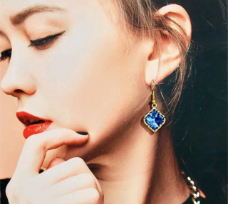 ブルー螺鈿のモロッカンピアスイヤリングは、人気のモロッカンフレームにブルーの螺鈿が施されたおしゃれなジュエリーです。揺れるたびに螺鈿が光り輝き、周囲の目を引きます。