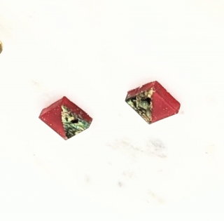 <グリーン螺鈿と赤のスクエアピアスイヤリング>