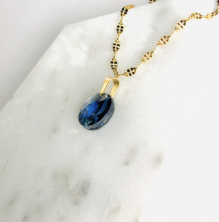 # 華やかな輝きが魅力のブルー螺鈿とスワロフスキーのネックレス ✨