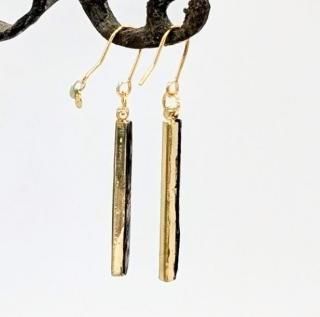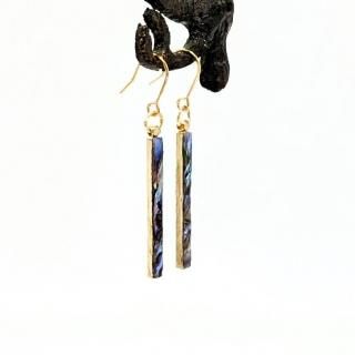ブルー螺鈿のゴールドメタルスティックピアスイヤリング【1414】
