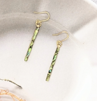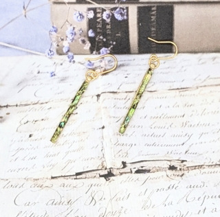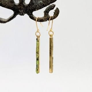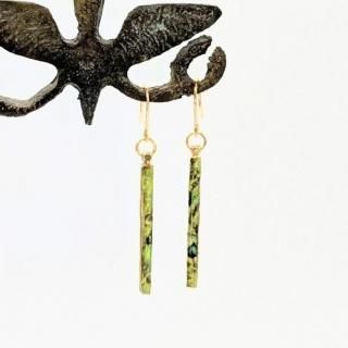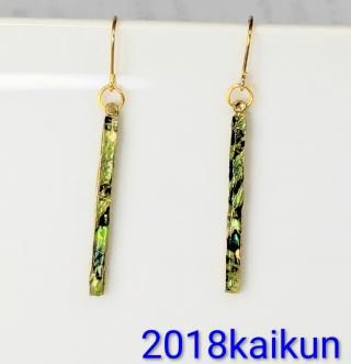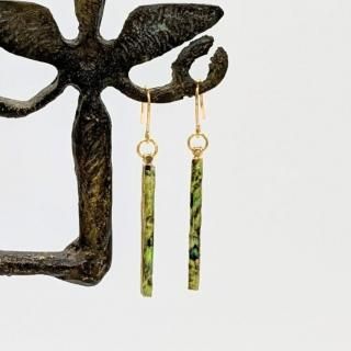 グリーン螺鈿とゴールドメタルスティックのピアスイヤリング【1413】
