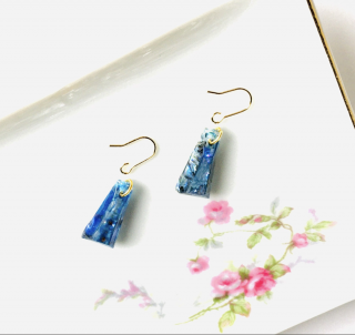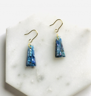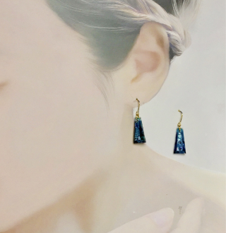 # ブルー螺鈿の台形ピアスイヤリング