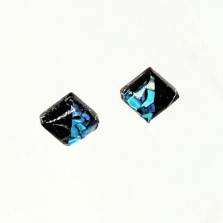ブルー螺鈿とブラックタイルのスクエアピアスイヤリング【1812】