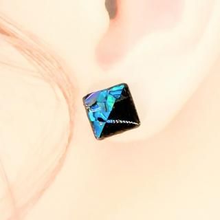 透明感溢れる正方形のブラックタイルと華やかな輝きを放つブルー螺鈿が絶妙に組み合わさった、スクエアピアスイヤリングが新登場!