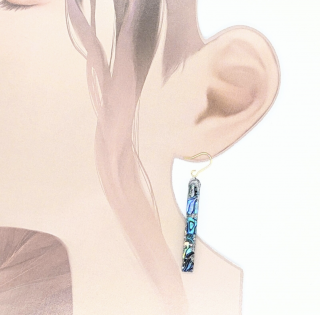 ブルー螺鈿の銀継ぎ風スティックピアスイヤリング【1664】