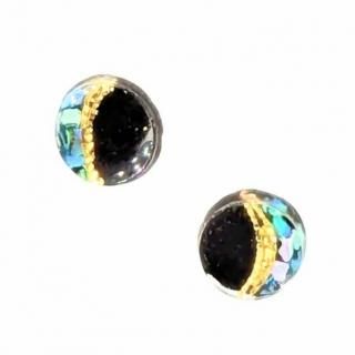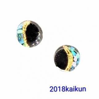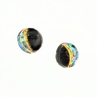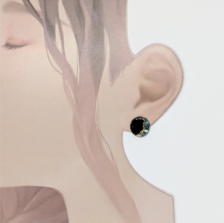 黒漆の地に螺鈿が施された、金継ぎ風ラウンドピアスイヤリングがこちらです。