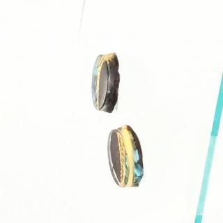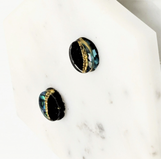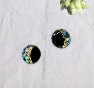 グリーン螺鈿と黒漆の金継ぎ風ラウンドピアスイヤリング【1938】