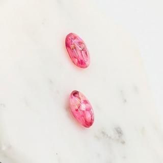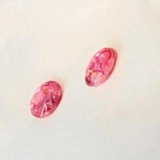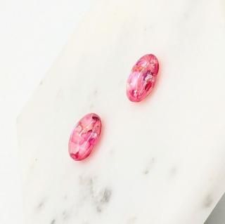 ピンク螺鈿のオーバルの雫のピアスイヤリング【1677】