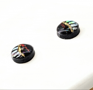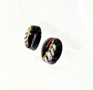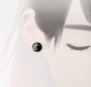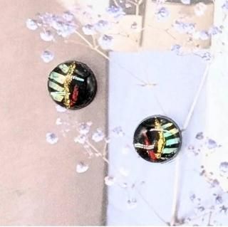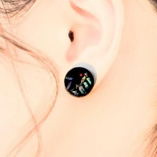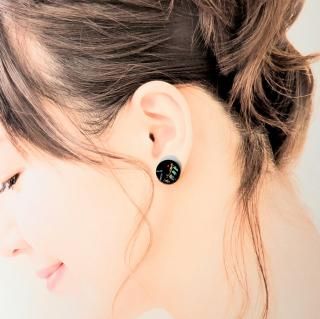 黒漆の深い色合いが際立つこのピアスイヤリングには、24k金箔と赤螺鈿が繊細に施されています。