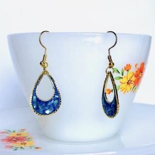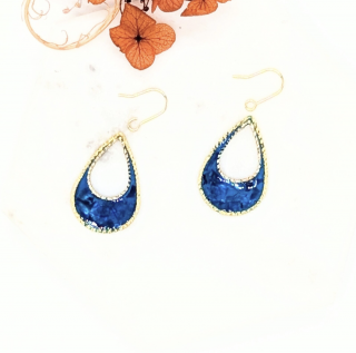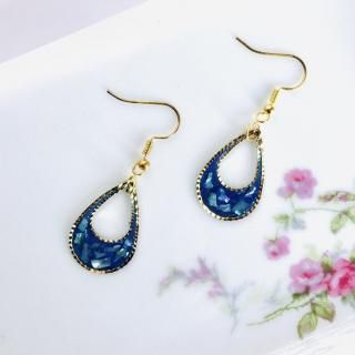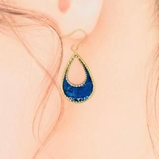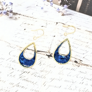 ブルー螺鈿の雫ピアスイヤリング【940】