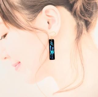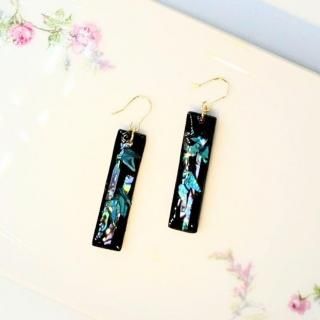 黒漆の地に螺鈿で描かれた竹林が、繊細かつ美しく輝きを放つピアスイヤリングです。