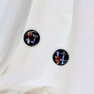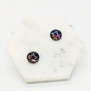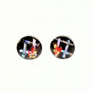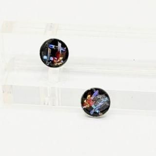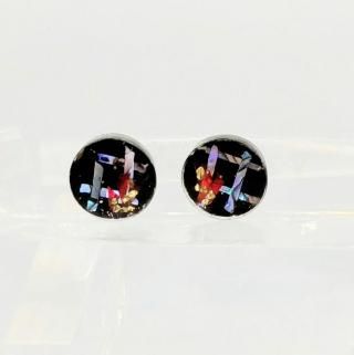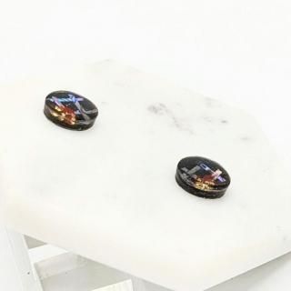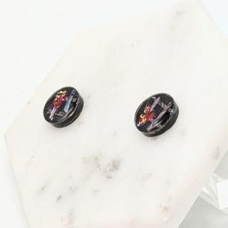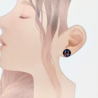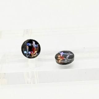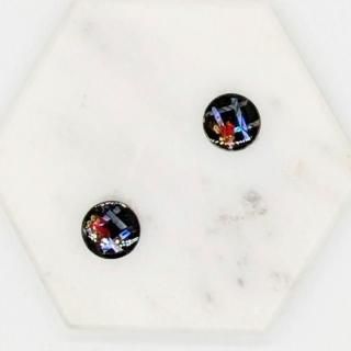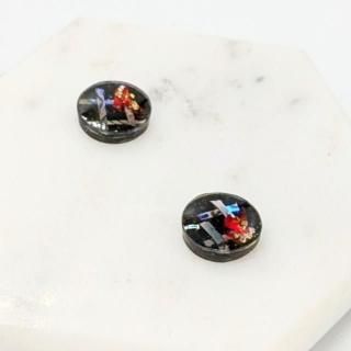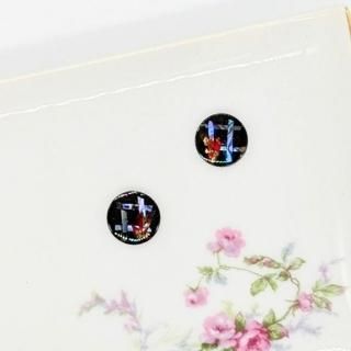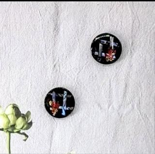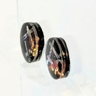 螺鈿の花と格子と黒漆のラウンドピアスイヤリング【2145】
