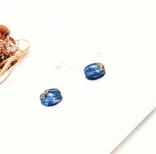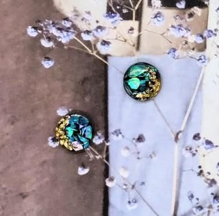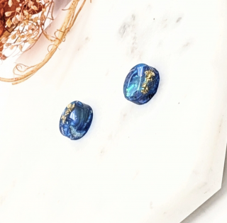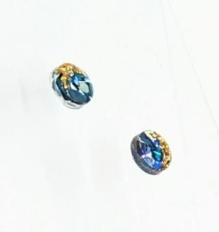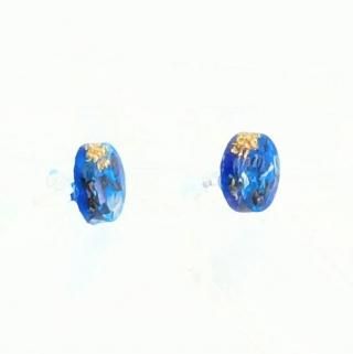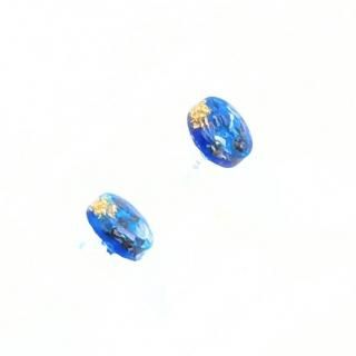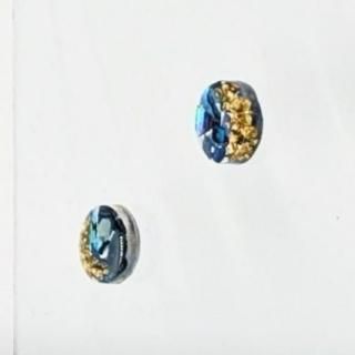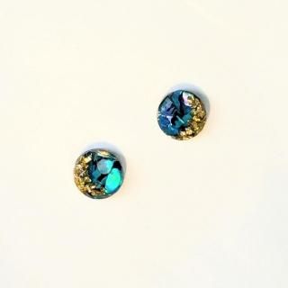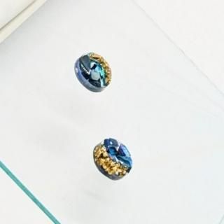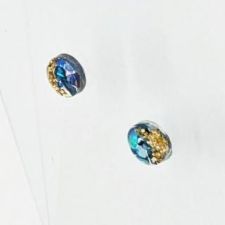 ブルーの螺鈿にゴールドのさざれ石をちりばめたピアスイヤリングです。
