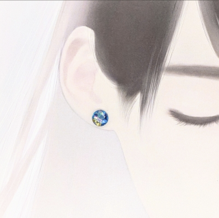 # 華麗なるブルー螺鈿の輝きが魅了する、ラウンドピアスイヤリング