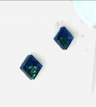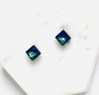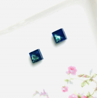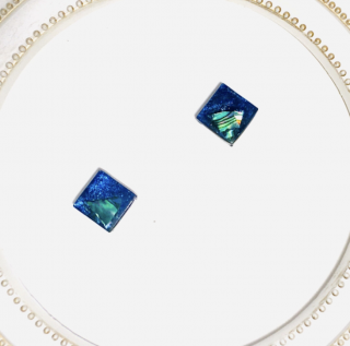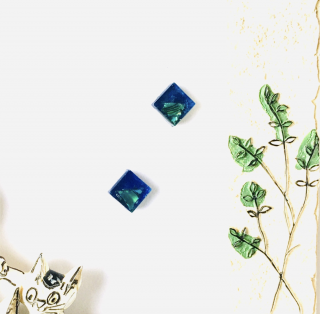 グリーン螺鈿と青のスクエアピアスイヤリング【10】