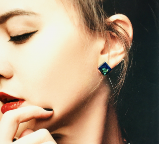ぜひ、あなたの個性を引き立て、ファッションをさらに輝かせる一品として、この「グリーン螺鈿と青のスクエアピアスイヤリング」をお試しください。