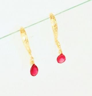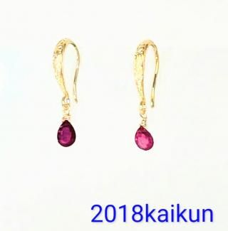 一点限り ルビーと14KGPのフレンチフックピアス【3009】