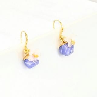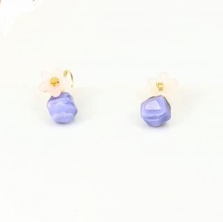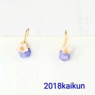 一点限り パープル天然石と花のピアス【3011】
