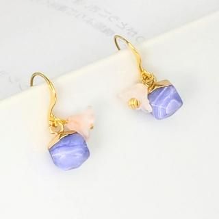 このパープル天然石と花のピアスは、あなたを特別な存在へと変えてくれることでしょう。