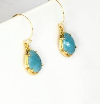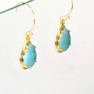 # 華やかな天然石アクアマリンが魅力的なデザインピアス ✨