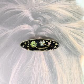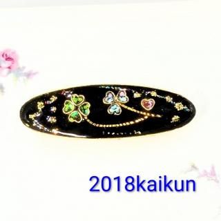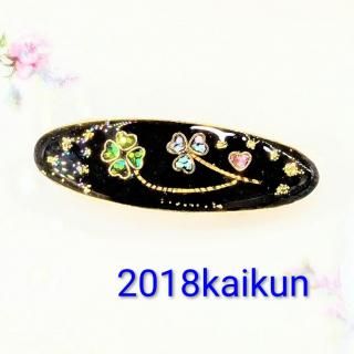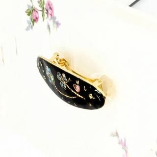 黒漆の地にハートを使った花の螺鈿の花が、角度によって輝きを放つ、美しいヘアバレッタです。